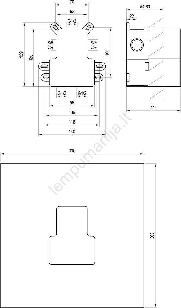 • R-box komplekte yra medžiagos tvirtinimui prie sienos; į komplektą neįeina vandentiekio jungtys ar kita santechnikos įranga.