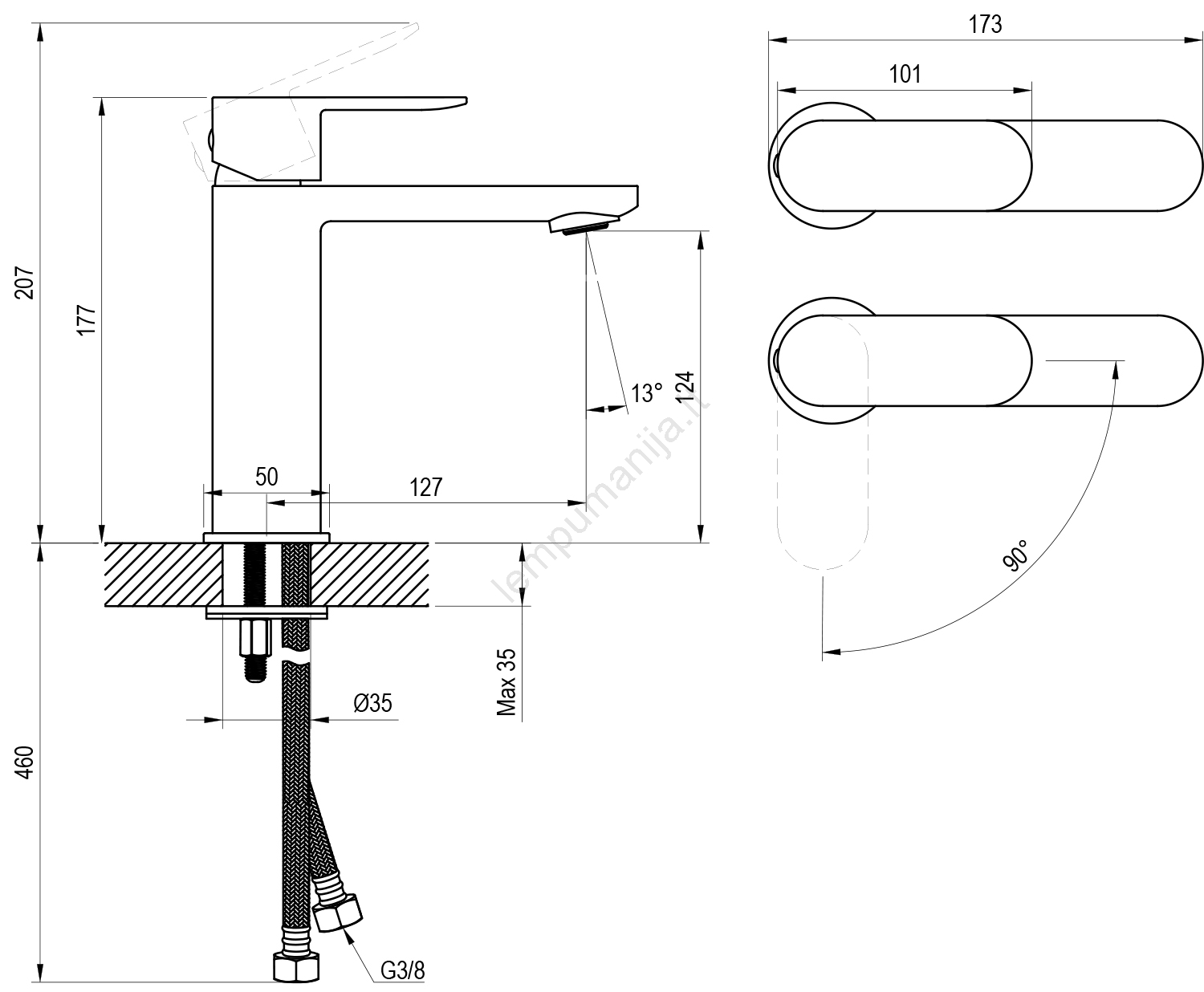 • Prijungimą palengvina lanksčios žarnos 450 mm ilgio su G3/8 jungtimis.