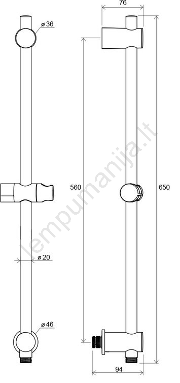 Ravak X07P342 - dušo strypas su sieniniu išvedimu 65 cm blizgus chromas | Lempumanija