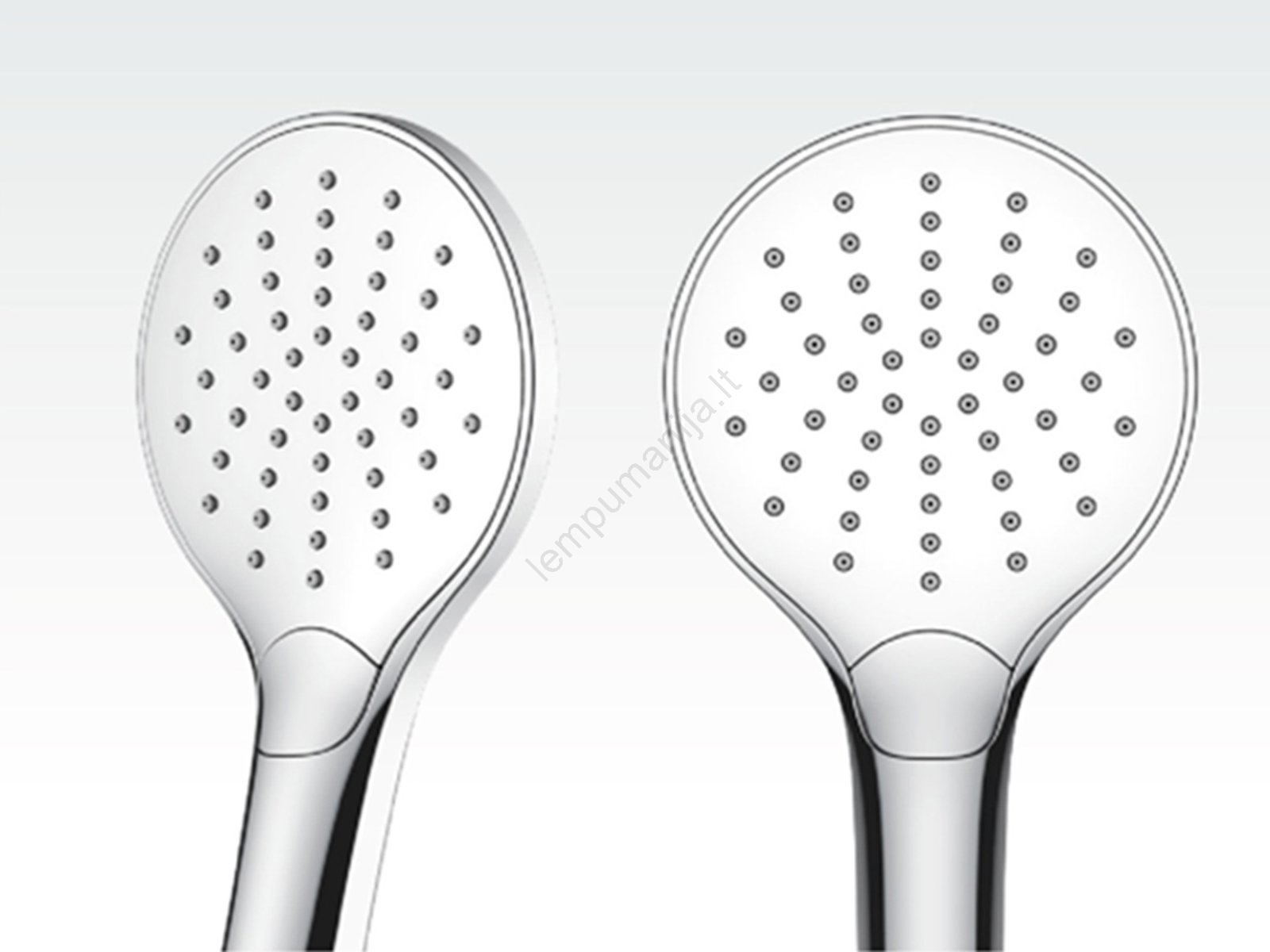 • Rinkinys taip pat turi rankinį dušą (11 cm skersmens), kuris siūlo 3 skirtingas vandens srauto funkcijas.