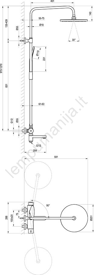 • Dušo stulpas netinka montuoti prie vonios (atsižvelgiant į galvos dušo aukštį).