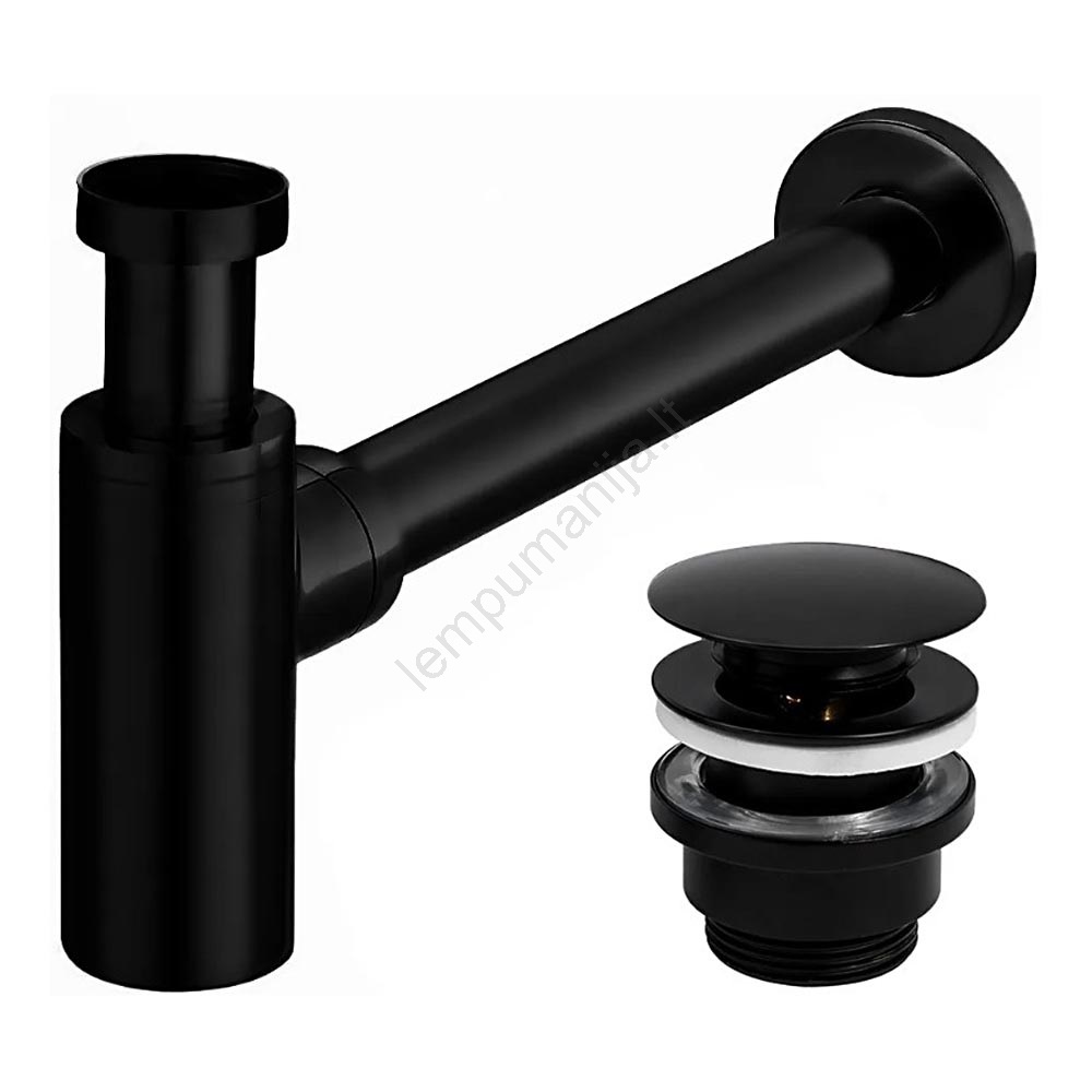 REA-A5215 - Praustuvo sifonas su CLICK-CLACK uždarymo mechanizmu, skersmuo 6,4 cm, matinė juoda
