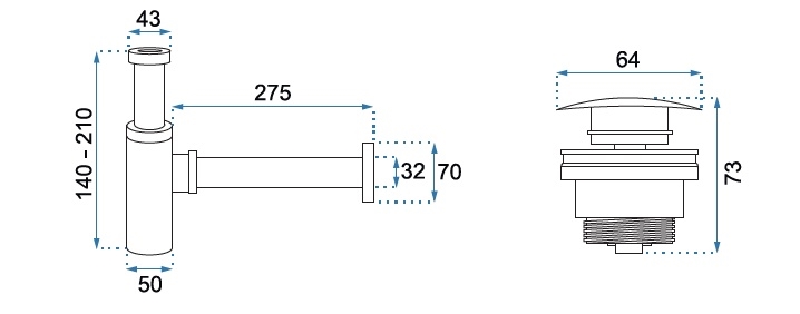 REA-A5692 - Praustuvo sifonas su CLICK-CLACK išleidimo mechanizmu, skersmuo 6,4 cm, auksinis