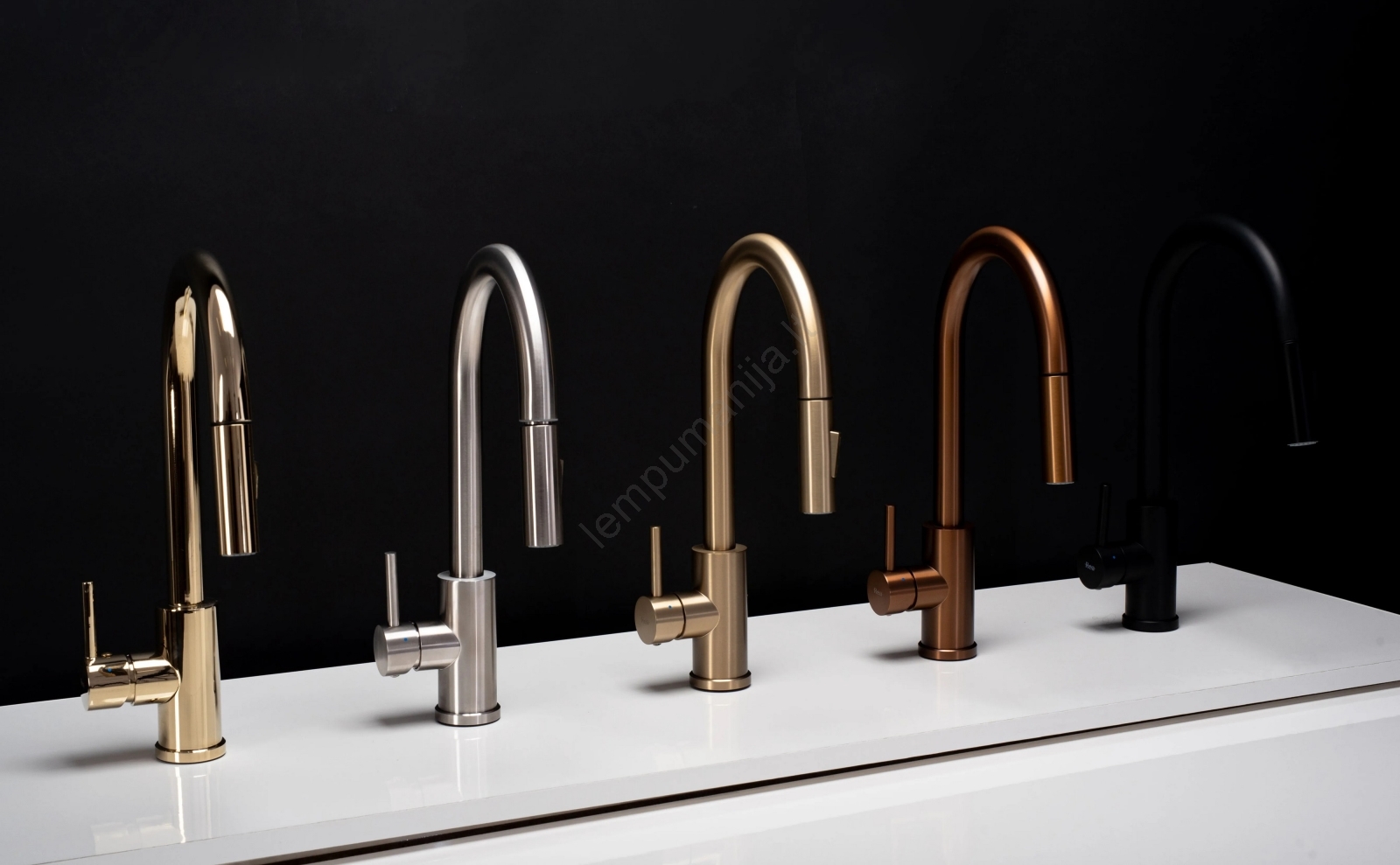 • Vienos svirties aukšto slėgio virtuvinis maišytuvas su pasukamu snapu.