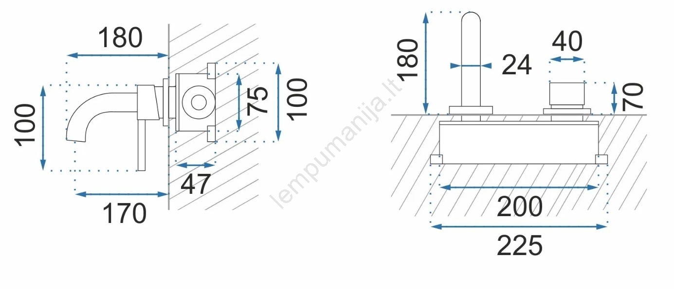 • Montavimas į sieną per BOX sistemą – plastinis modulis su žalvariniais vidiniais elementais.