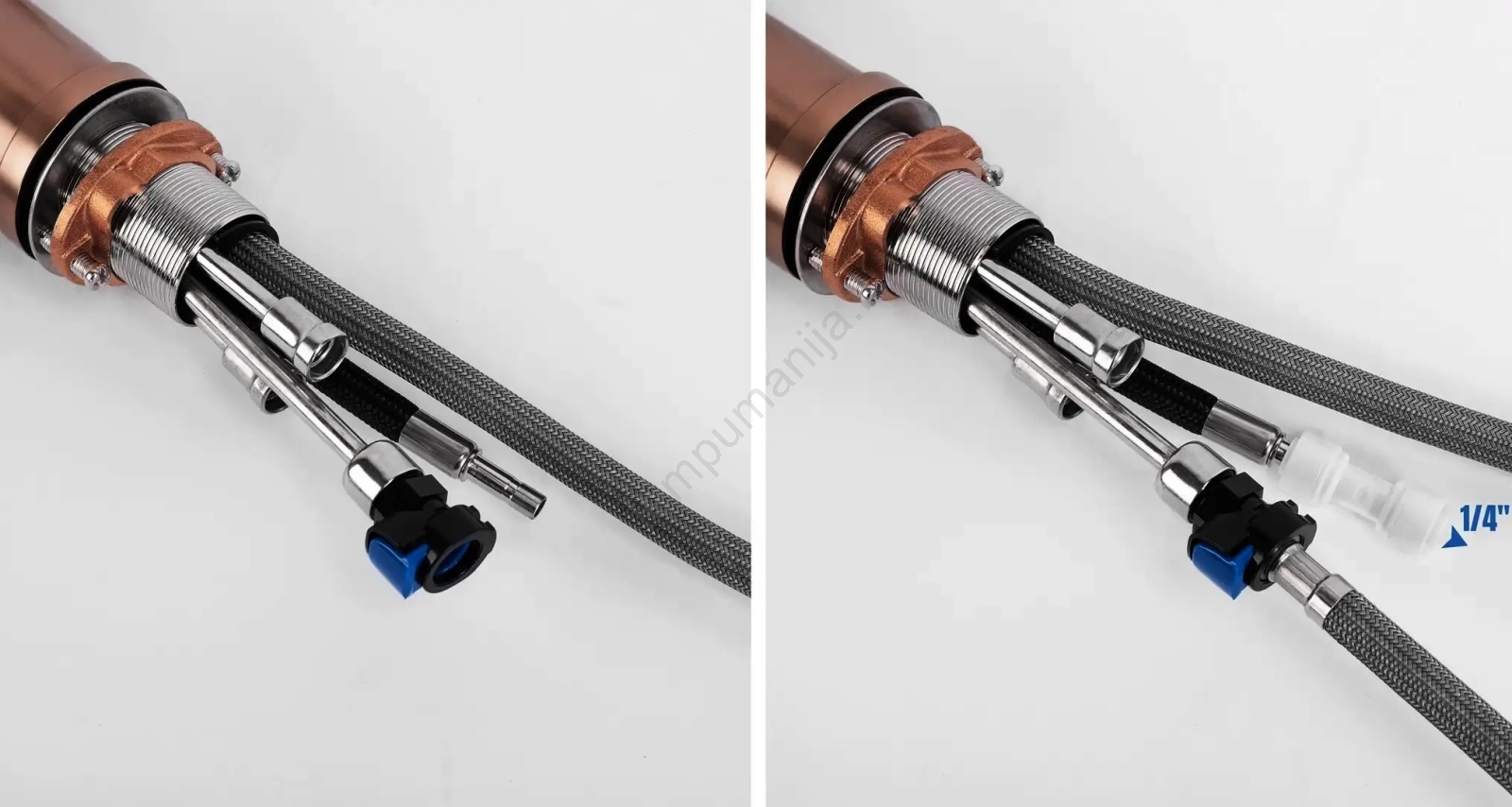 • Galimybė prijungti prie vandens filtravimo įrenginio (valdymui skirta mažesnė svirtelė).