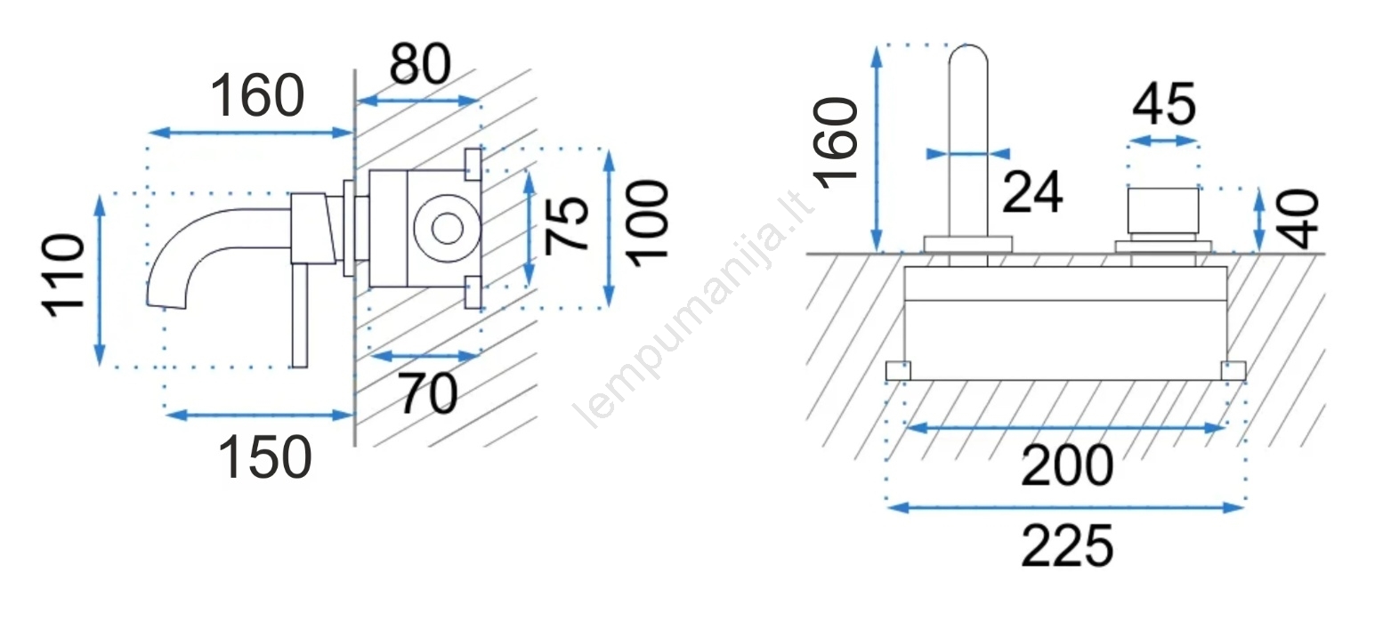 • Montavimas į sieną naudojant BOX sistemą – plastinis modulis su žalvariniais vidiniais elementais.