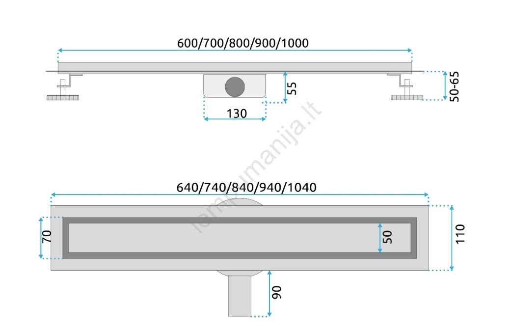 REA-G2704 - NEOX PRO nuotekų latakas 90 cm, nerūdijančio plieno / šlifuota aukso apdaila | Lempumani