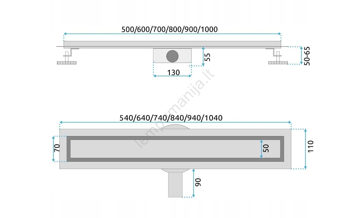 • Linijinis nuotekų latakas Neox Pro, 60 cm ilgio, elegantiškas nerūdijančio plieno dizainas.