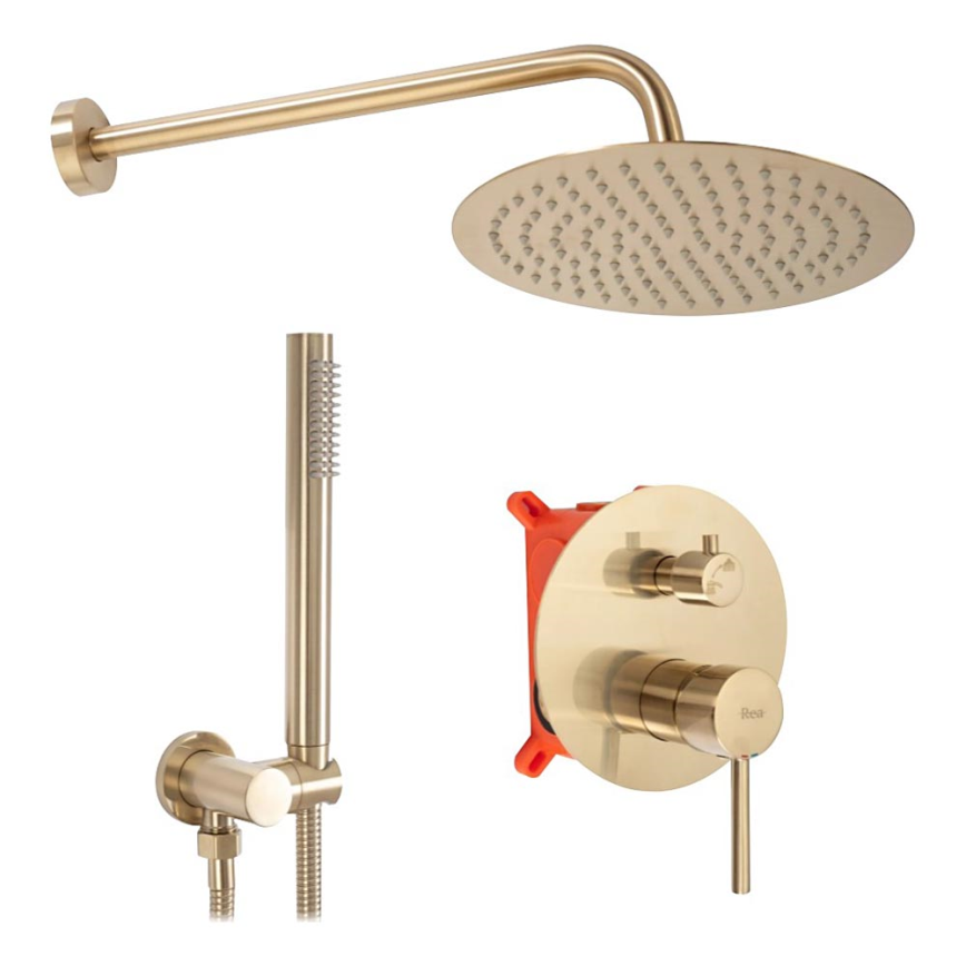 REA-P4160 - Dušo komplektas su potinkiniu maišytuvu LUNGO, šlifuoto aukso | Lempumanija