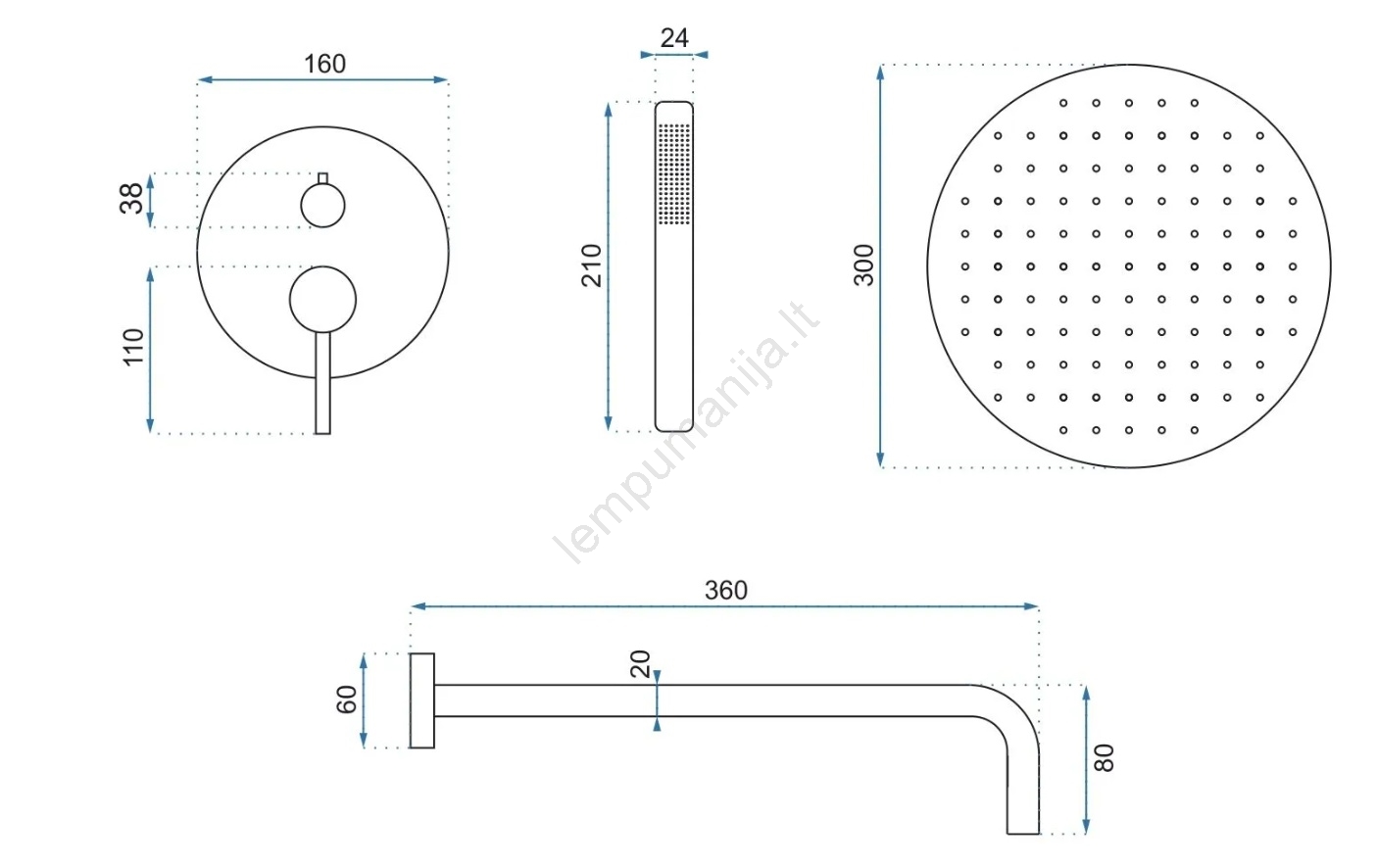 REA-P4160 - Dušo komplektas su potinkiniu maišytuvu LUNGO, šlifuoto aukso