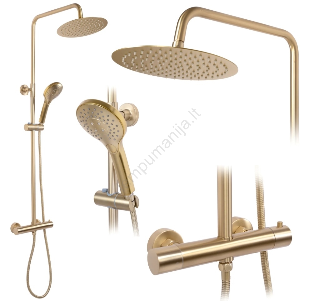 REA-P6602 - VINCENT dušo komplektas su termostatiniu maišytuvu, šlifuoto aukso | Lempumanija