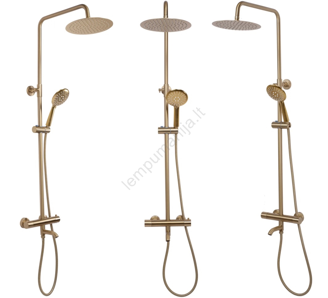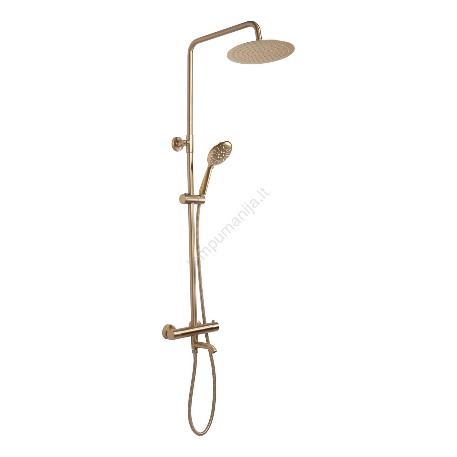 REA-P6604 - Dušo rinkinys su termostatiniu maišytuvu LUNGO, šlifuoto aukso spalvos | Lempumanija