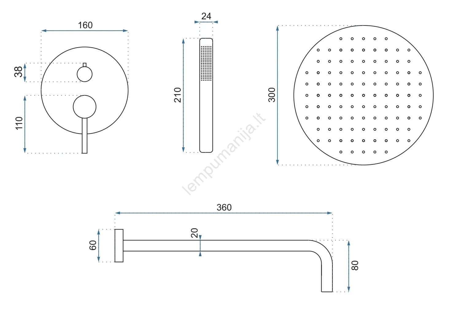 REA-P8809 - LUNGO potinkinis dušo komplektas su maišytuvu, šlifuotas varis