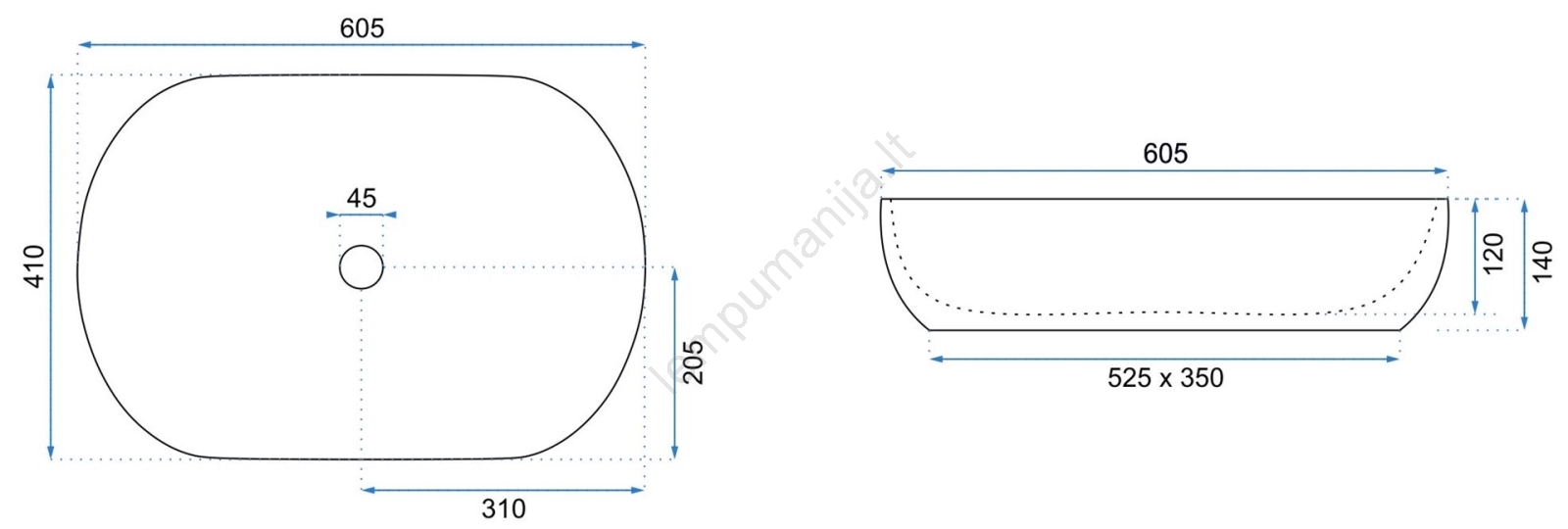 REA-U0024 - Praustuvas ant stalviršio CLEO 41x60,5 cm keramika/blizgi balta | Lempumanija