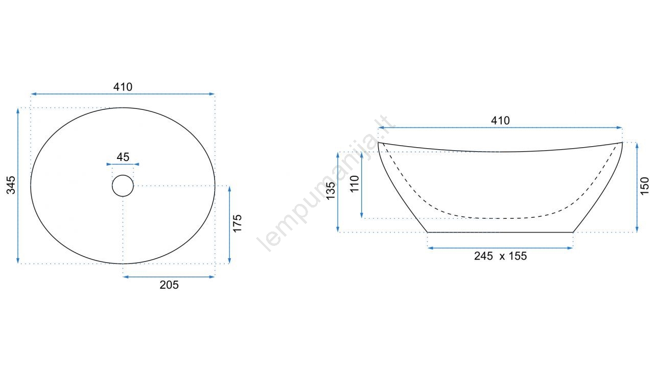 REA-U0133 - Praustuvas montuojamas ant stalviršio SOFIA 34,5x41 cm keramika/blizgi balta | Lempumani
