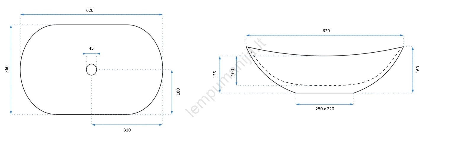 REA-U0441 - Praustuvas ant stalviršio ROYAL 35,5x61,5 cm keramika/blizgi balta | Lempumanija