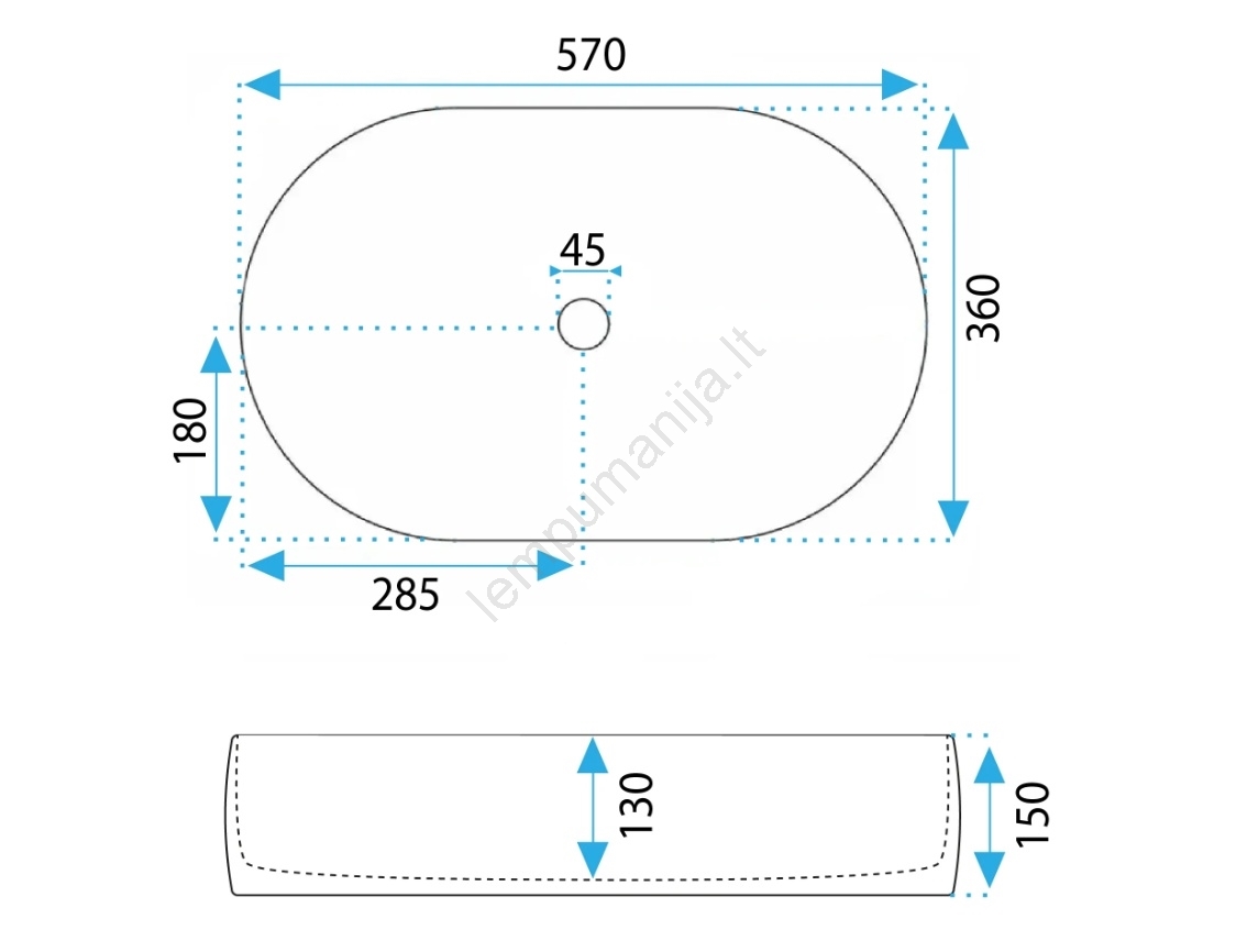 REA-U0600 - Praustuvas ant stalviršio ALMA 36x57 cm keramika/blizgi balta | Lempumanija