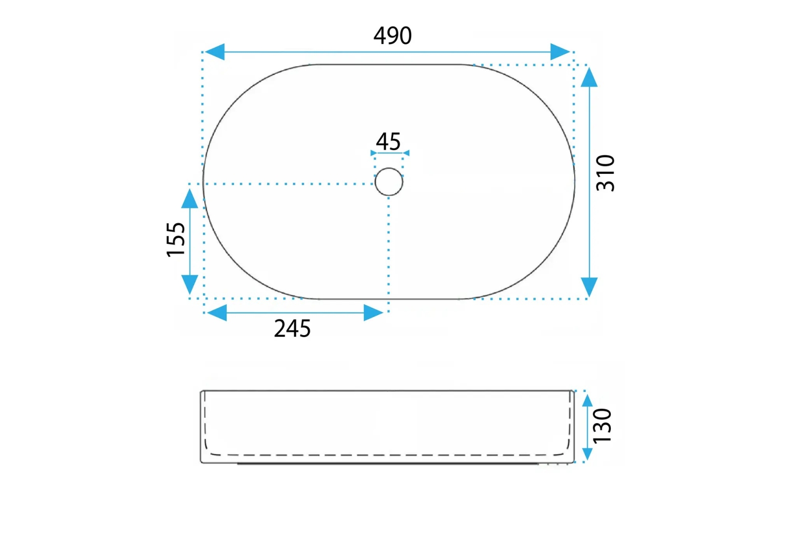 • REA-U6375 - Praustuvas ant stalviršio VANDA 31x49 cm keramika/matinė mėlyna