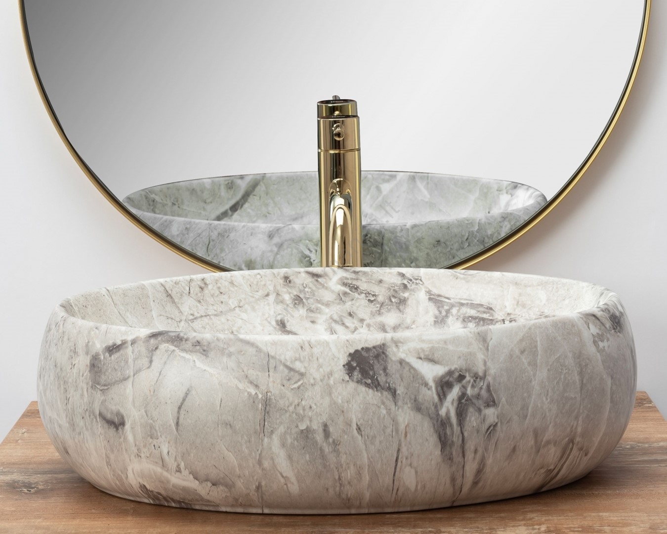 REA-U1020 - Ant stalviršio montuojamas praustuvas LINDA 34x48,5 cm keramika/akmens imitacija | Lempu