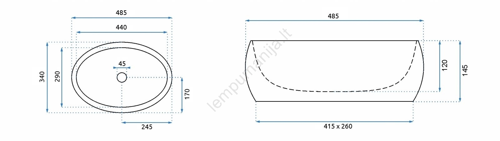 • REA-U1020 - Ant stalviršio montuojamas praustuvas LINDA 34x48,5 cm keramika/akmens imitacija