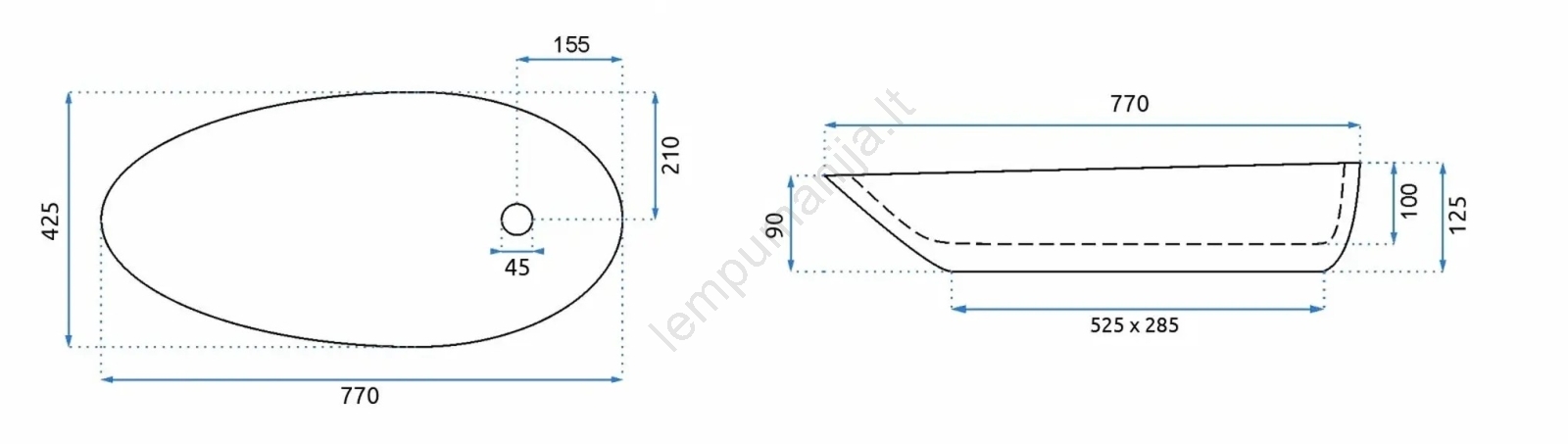 • Praustuvo maišytuvas ir išleidimo dalis nėra komplekte.