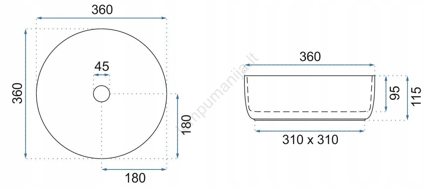 • Praustuvė pagaminta iš aukštos kokybės sanitarinės keramikos.