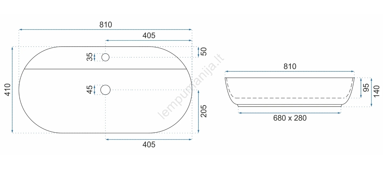 REA-U2541 - Praustuvas ant stalviršio AURA 41x81 cm keramika/blizgi balta | Lempumanija