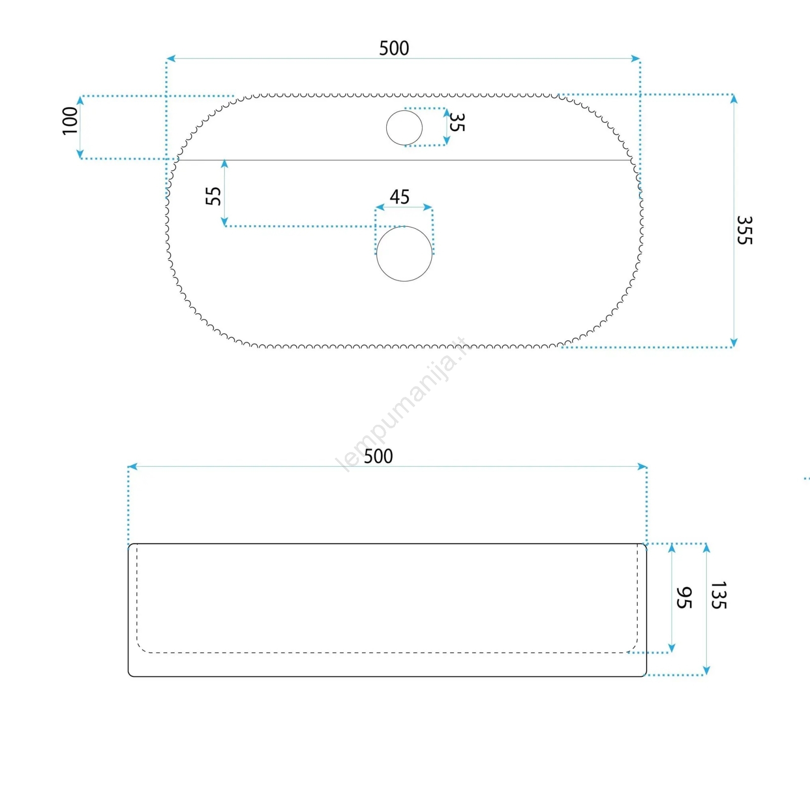 • Praustuvas pagamintas iš aukštos kokybės sanitarinės keramikos.