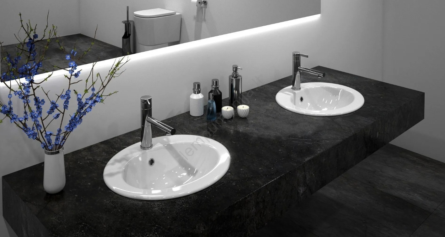 • Modernus ir elegantiškas įleidžiamas praustuvas su perpildymo anga.