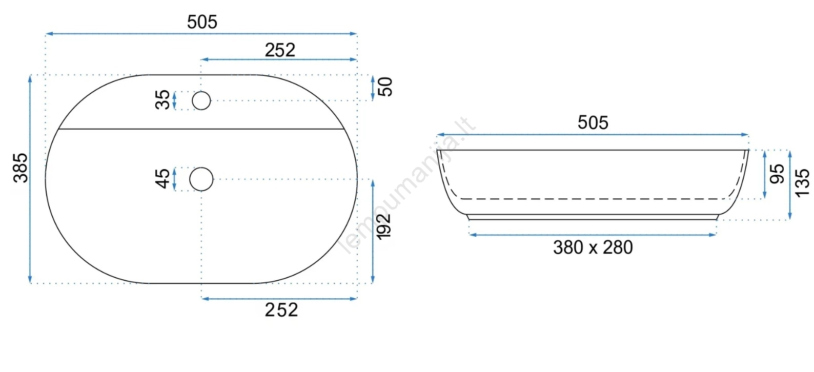 REA-U4620 - Ant stalviršio pastatomas praustuvas AURA 38,5x50,5 cm keraminis / blizgi balta | Lempum
