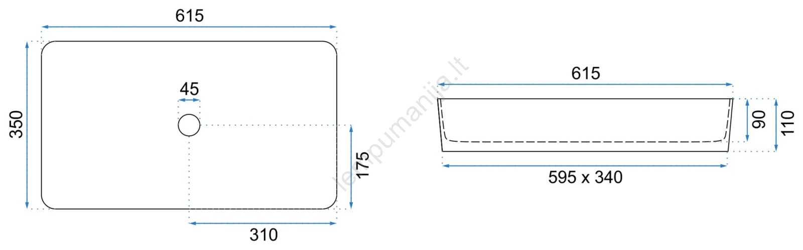 • Praustuvo maišytuvas ir nutekėjimo komplektas nėra komplekte.