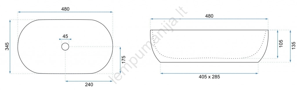 • REA-U0416 - Praustuvas ant stalviršio AMELIA 34,5x48 cm keramika/blizgi balta