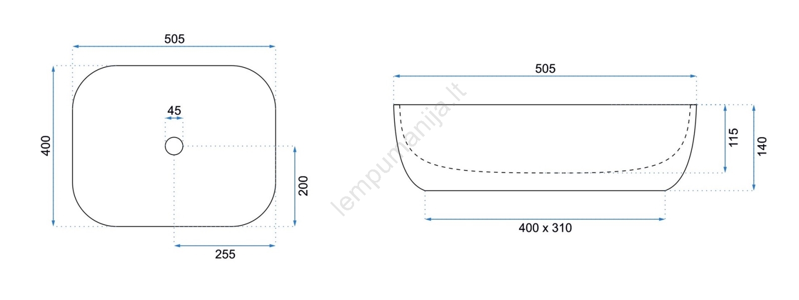 REA-U6300 - Praustuvas ant stalviršio MONA SLIM 40x50,5 cm keramika/blizgi balta | Lempumanija
