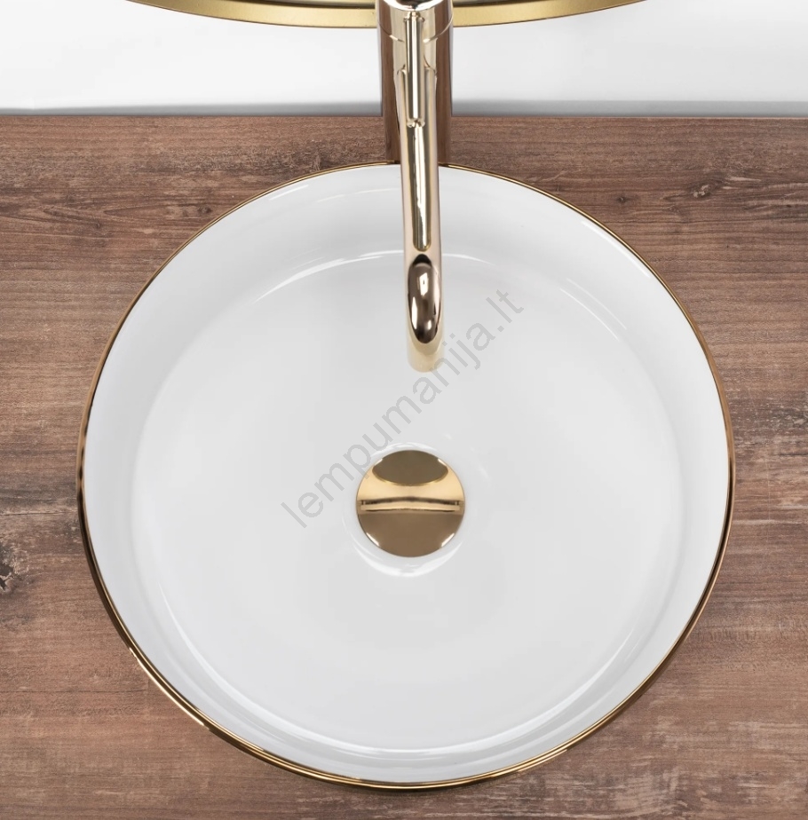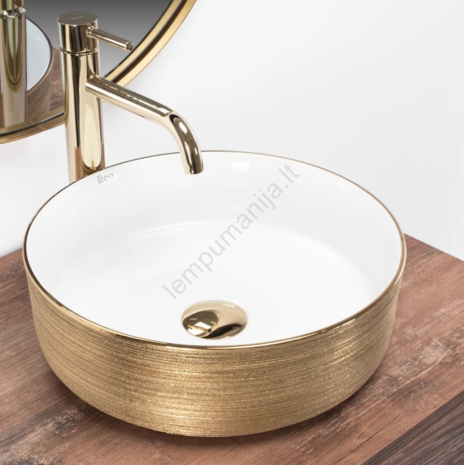 REA-U6630 - Praustuvas ant stalviršio SAMI, skersmuo 36 cm, keramika/balta/šlifuoto aukso | Lempuman
