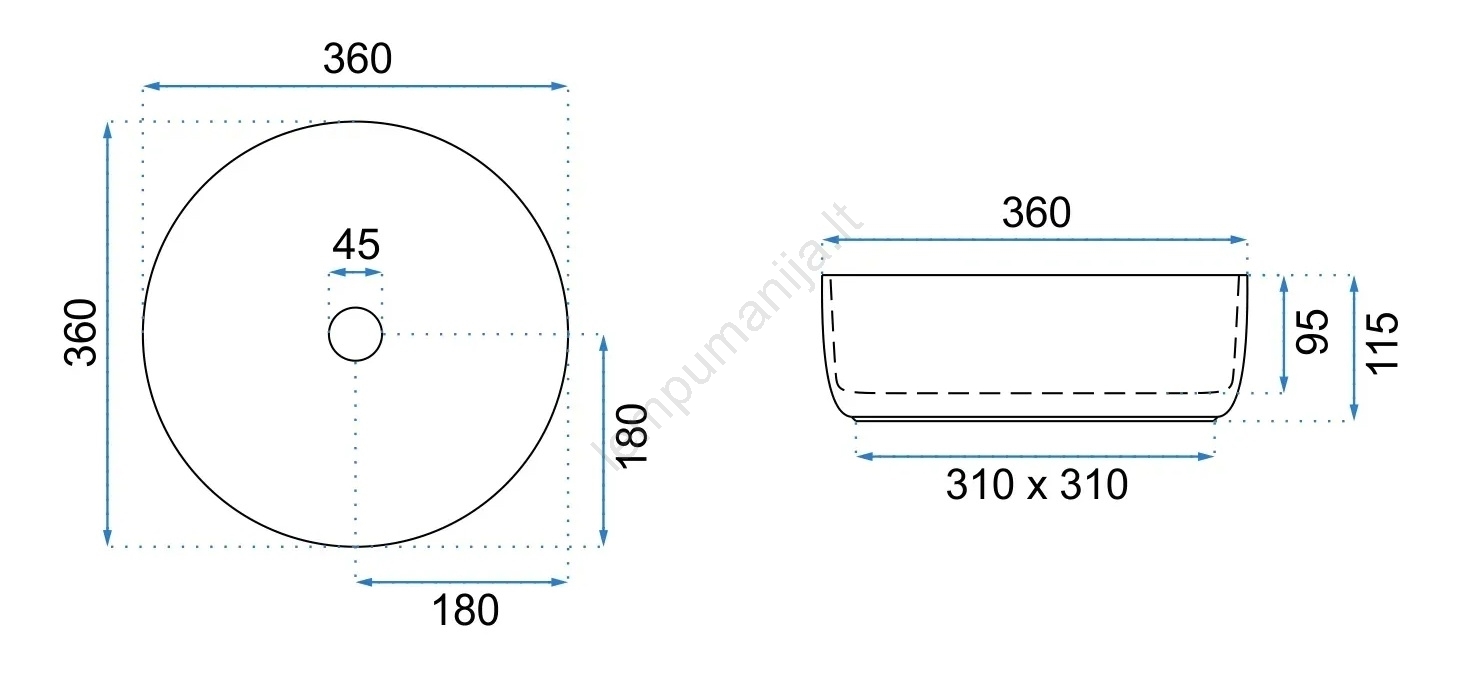 REA-U6630 - Praustuvas ant stalviršio SAMI, skersmuo 36 cm, keramika/balta/šlifuoto aukso