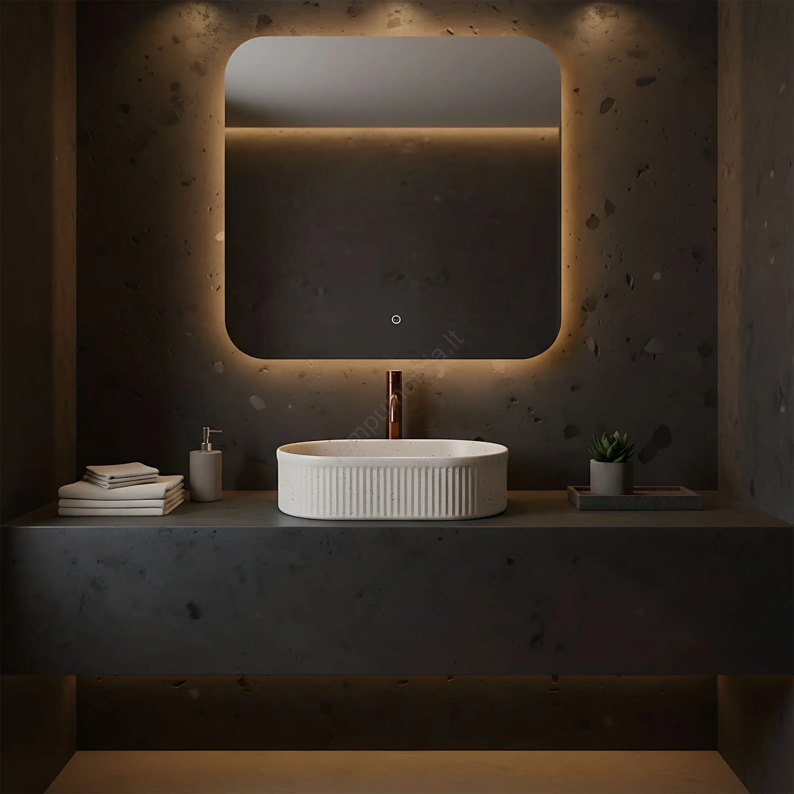 • REA-U7342 - Praustuvas ant stalviršio VANDA 31x49 cm keramika/smėlio spalva/akmens imitacija