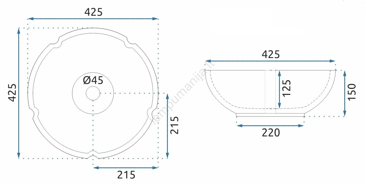 • REA-U5666 - Praustuvas ant stalviršio VIVIEN, skersmuo 42,5 cm, keramika, ornamentinis raštas