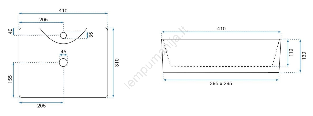REA-U8196 - Praustuvas ant stalviršio KELLY MINI 31x41 cm keramika/blizgi balta | Lempumanija