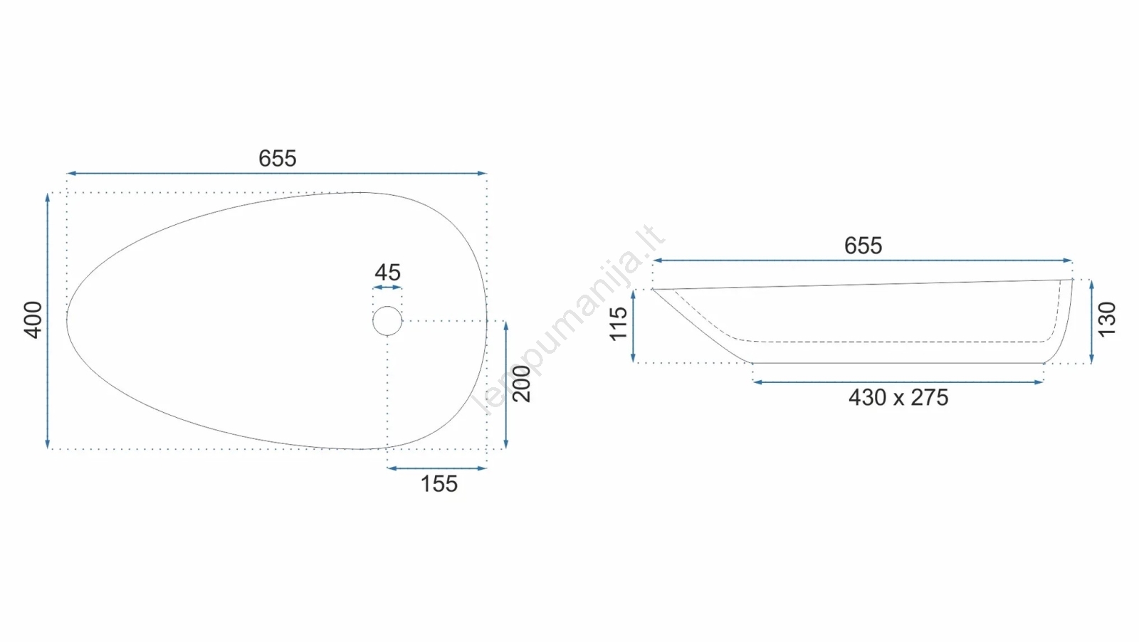 • Praustuvo maišytuvas ir išleidimo vožtuvas nėra komplekte.
