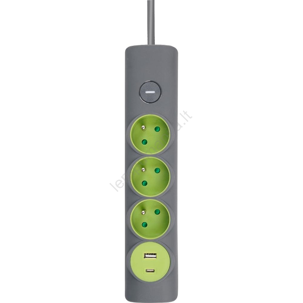 Retlux - 3 lizdų ilgiklis su jungikliu, Tipo E + 1xUSB-A + 1xUSB-C, 1,4 m, pilkas