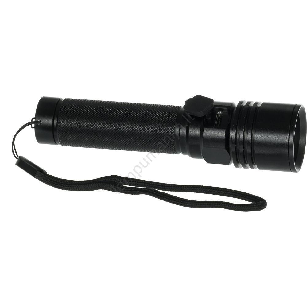 Įkraunamas aliumininis LED žibintuvėlis, 3 W, 2000 mAh, IPX4, juodas