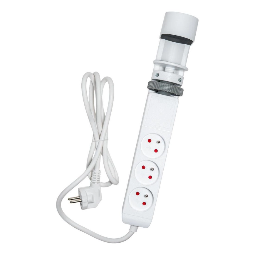 Prailginimo laidas su tvirtinimu prie stalo, 3 lizdų, Tipas E, 2x USB-A + 1x USB-C, 1,5 m, balta