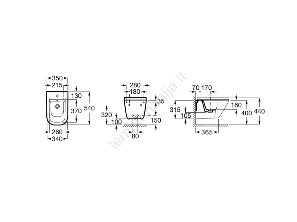 • Nuotekų išleidimo tipas: horizontalus/galinis.