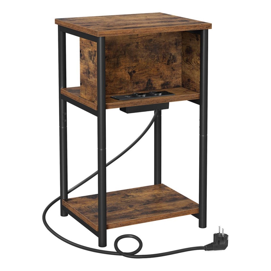 Šoninis staliukas su įmontuotais elektros lizdais ir USB prievadais ROD ruda/juoda