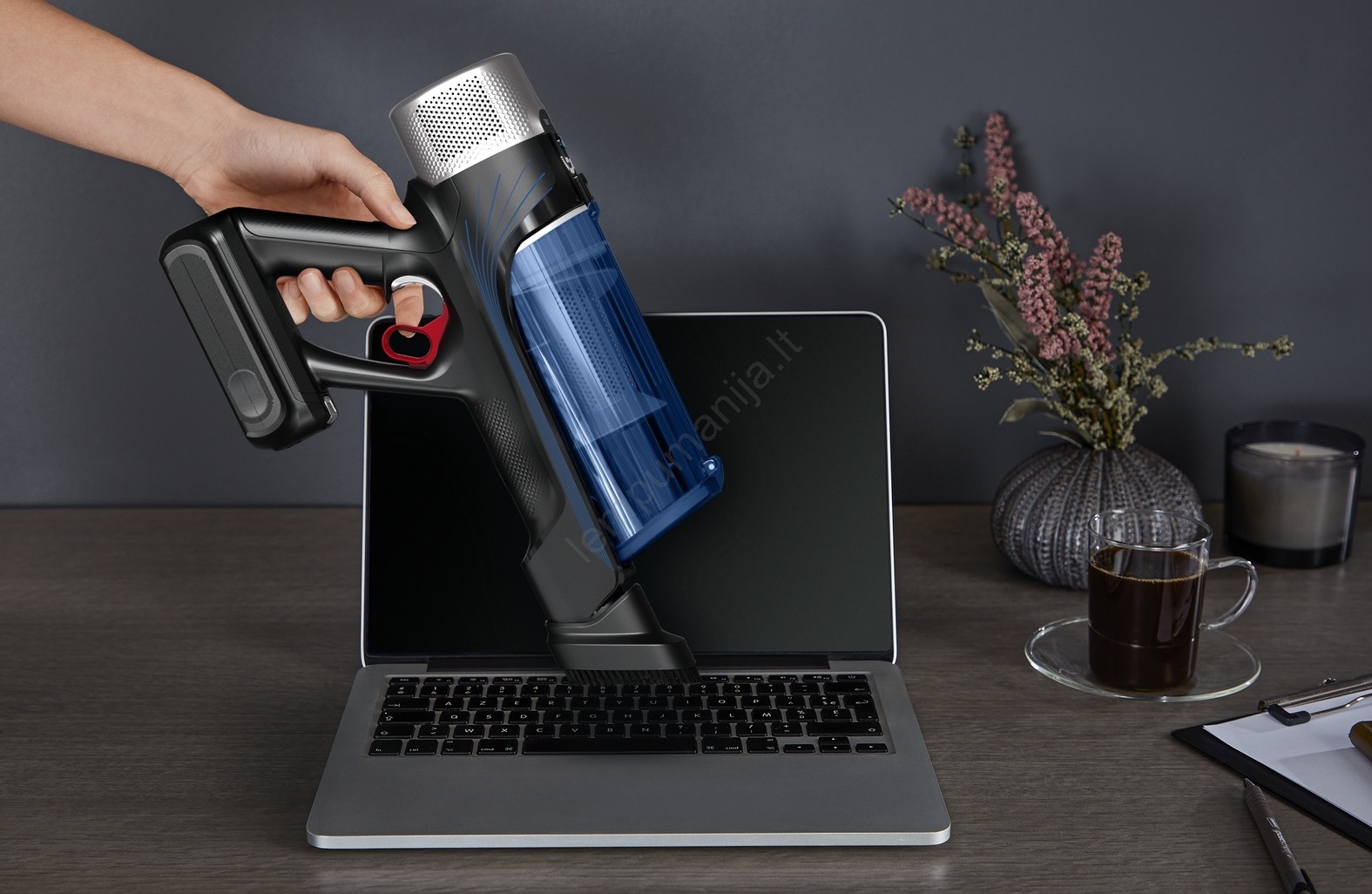 • Itin galingas belaidis vertikalus dulkių siurblys, sukurtas visapusiškam valymui: sausoms ir drėgnoms dangoms dėka „Aqua“ technologijos – siurbimas ir šluostymas tuo pačiu metu.