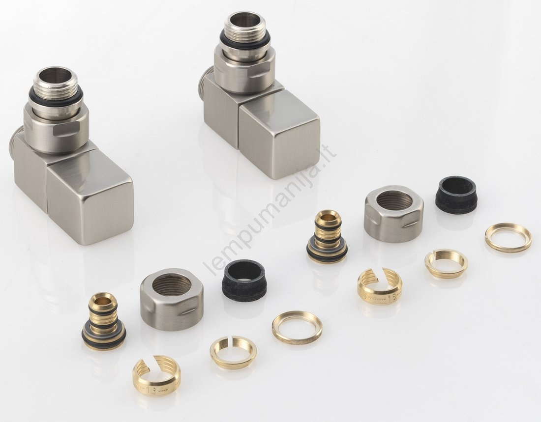 Sapho - CUBE kampinių vožtuvų prijungimo komplektas, 2 vnt., iš šlifuoto nerūdijančio plieno