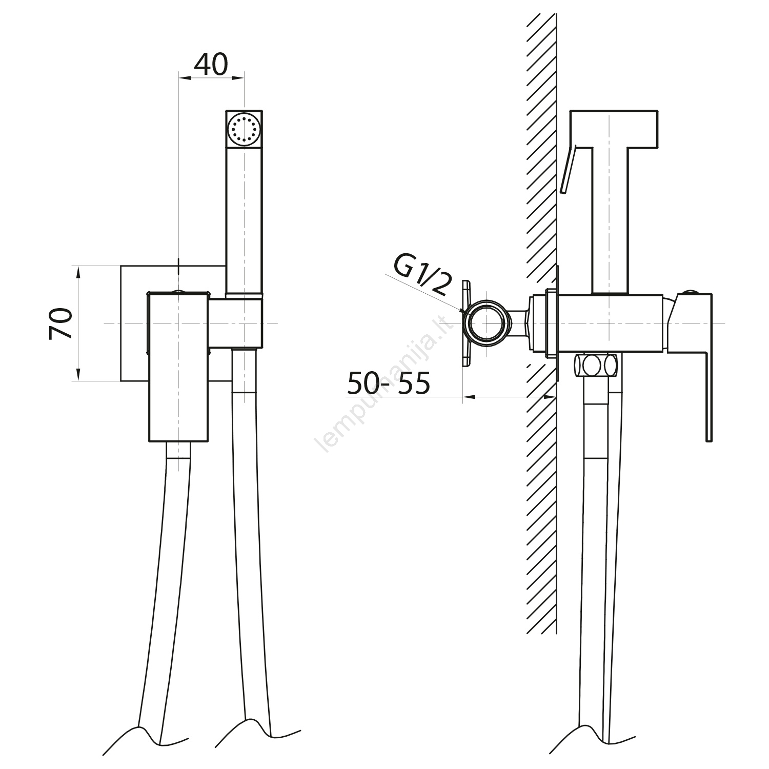 Sapho - Bidetinis maišytuvas su rankiniu dušeliu CUBEMIX, skirtas įleidžiamam montavimui, matinė auk