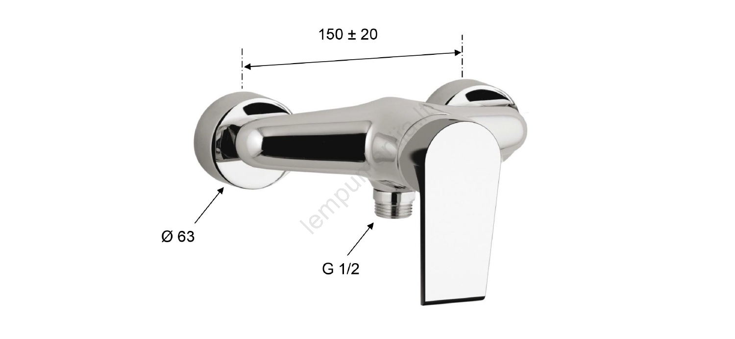 • Šis dušo maišytuvas turi cilindrinį korpusą ir kampuotą snapą.