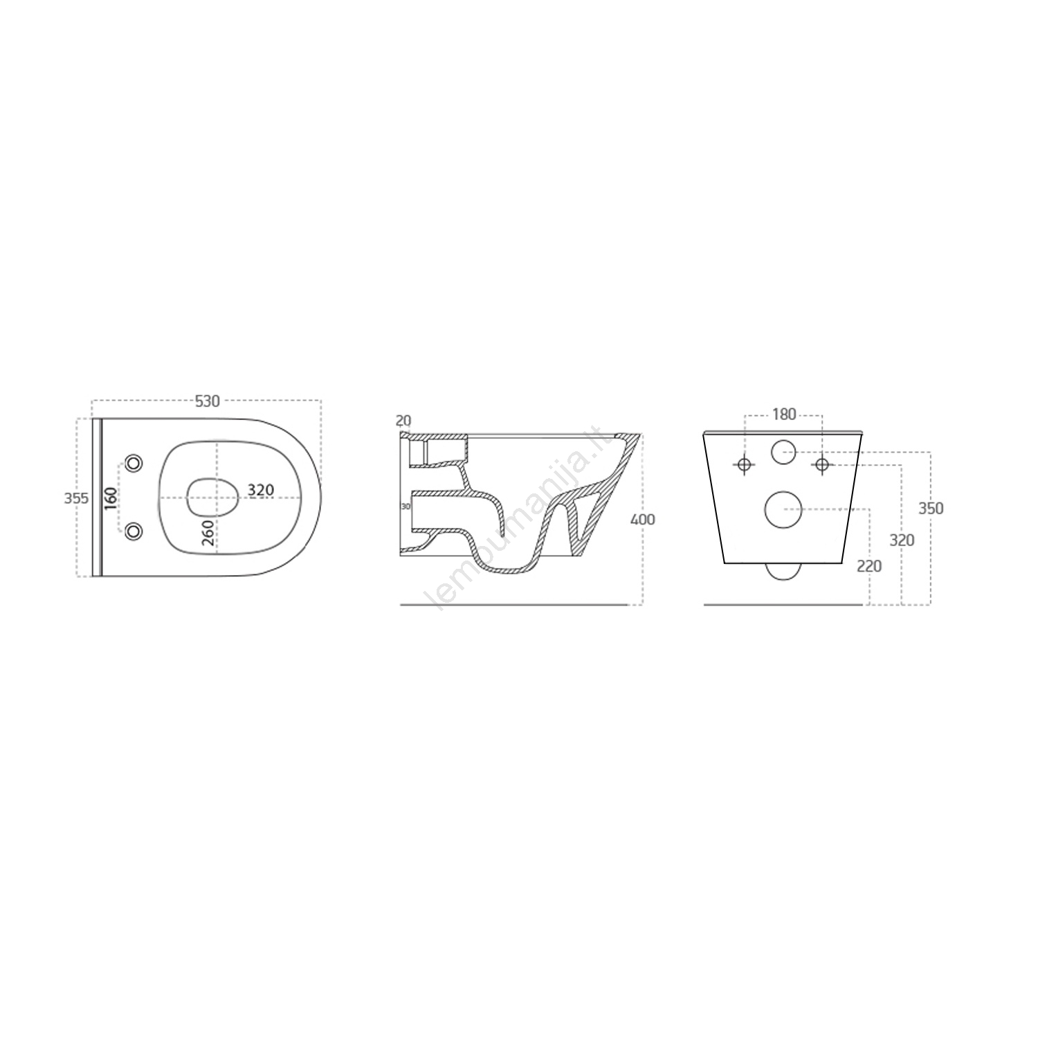 • Montavimas galimas naudojant vienos krypties įleidžiamą maišytuvą.